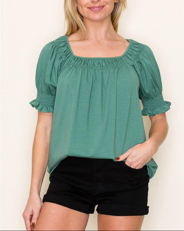 Aleah Square Neck Puff Sleeve Top- Green
