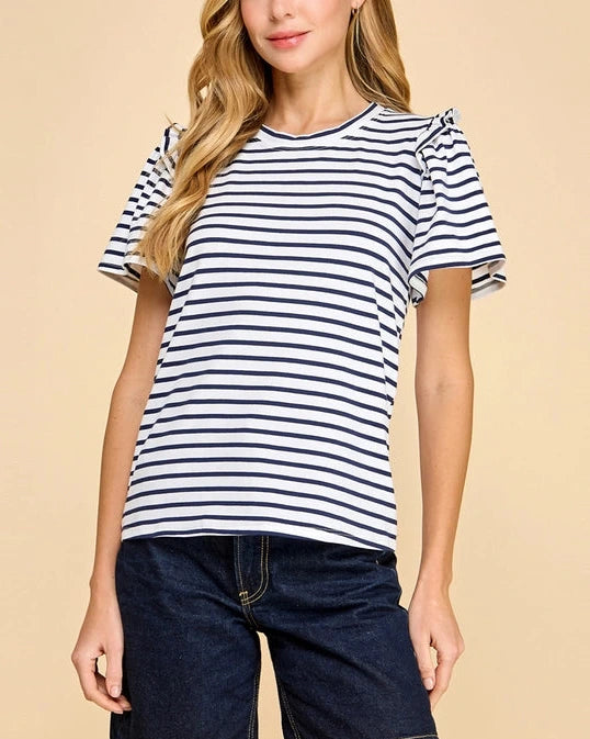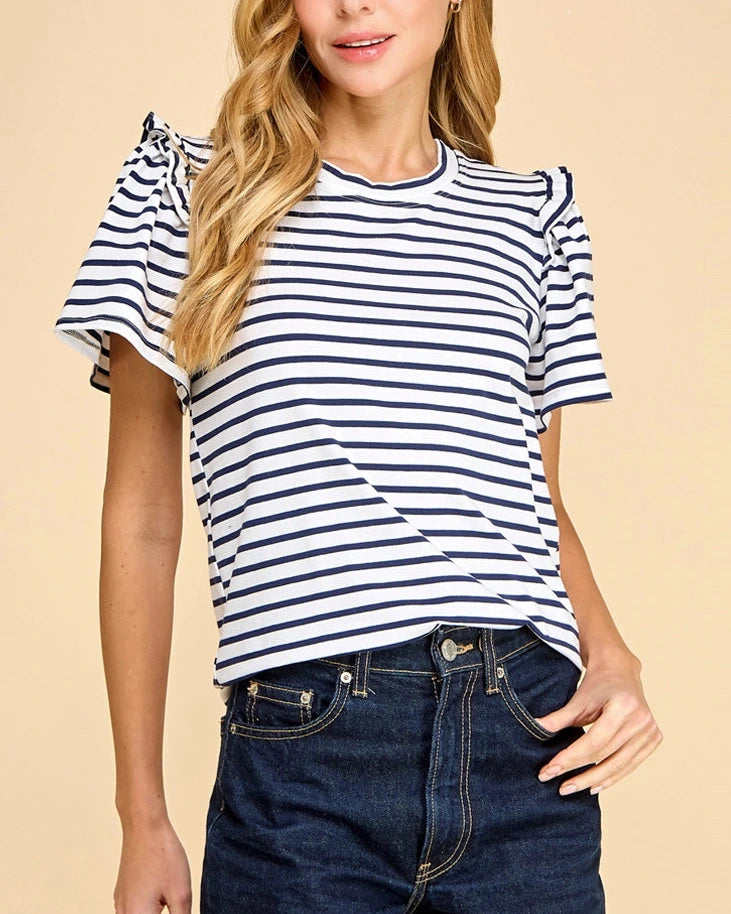 Haisley Striped Puff Sleeve Top- Lavender